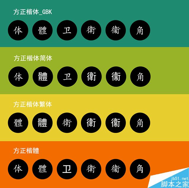 同樣是方正楷體,上面4種字體采取的編碼標準不一樣,所以支持的字數、字形也有差別。不能顯示成楷體,就表示這種字體不支持這個字。