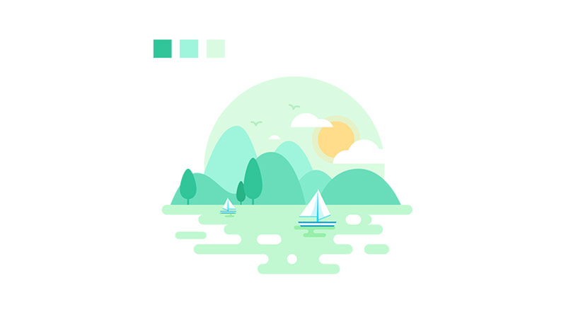 這張圖想表達的是冬日的風景,冬天清澈,干凈的印象使我選擇了淺色調調和,同時利用了明度的變化來表現層次感。