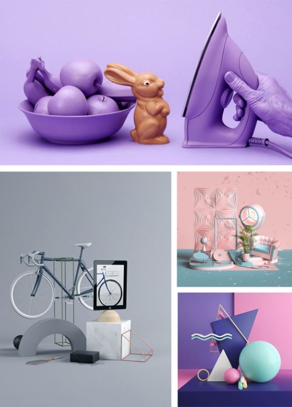 隨著C4D的流行,三維的表現(xiàn)形式在設(shè)計中變得愈演愈烈。不過在后扁平化時代,如何在扁平與立體的形式中間尋找平衡是大家關(guān)注的焦點,而三維純色渲染恰恰是一種很好的嘗試。空間感的布局拓展了畫面深度,同時物體純色系的渲染方式又強化了畫面的平面感。設(shè)計將干擾人們注意力的因素排除,只留下需要傳達的主題部分,令人印象深刻,這樣的形式已經(jīng)在攝影及三維藝術(shù)中流行起來,充滿儀式感的畫面讓設(shè)計者愛不釋手。