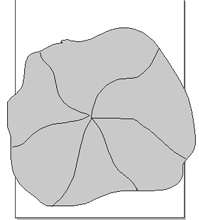 1、單擊工具欄中的freehand工具,在工作頁面上繪制不規則的路徑,在路徑選中的情況下,單擊鼠標右鍵,在彈出的菜單中選擇“path/closed”,使其成為一個閉合的路徑;給閉合路徑填充rgb(91,164,109)顏色;再利用freehand工具在填充路徑上畫幾條曲線,最后結果如圖6所示。