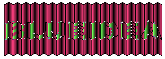 轉(zhuǎn)換成路徑后的文字對(duì)象自動(dòng)成為一個(gè)組對(duì)象,我們得先把它解組,使用菜單命令:修改>取消組合。在這兒我們先選擇第一字母:b,然后按下shift鍵選擇位于這個(gè)字母下的手風(fēng)琴隔板,然后使用菜單命令:修改> 結(jié)合>裁剪,執(zhí)行完這個(gè)操作后,文字內(nèi)部將被手風(fēng)琴的顏色所填充,而文字邊框自動(dòng)填充上黑色。