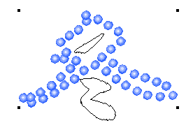 |||使用快捷方式ctrl+c將該混合對象拷貝到剪貼板中。按住ctrl鍵,分別選中混合對象和“冬”字的一條路徑,使用菜單命令:modify>combine>join blend to paths,此時這些小圓球就被會吸附到路徑對象中。如果您覺得路徑上小圓球太少的話,打開object面板,調整blend on a path選項中的steps步驟,這兒我設置為30。就會出現如下圖所示的效果。