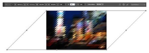 使用自由變換工具(Ctrl + T 或選擇主菜單“編輯”>“自由變換”)讓圖像水平傾斜45度。