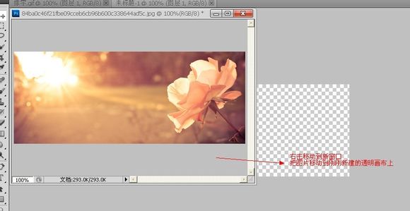 第二步,新建一個500*200的透明畫布 把剛剛裁剪好的圖按住shift鍵拖進來