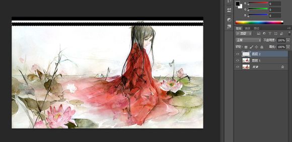 然后把圖層1和圖層3移動到上邊選中倆圖層用鎖給鎖起來,然后切換選擇工具點這倆圖層用鍵盤上的方向鍵下移2到3下【移動多了就變成大浪了】