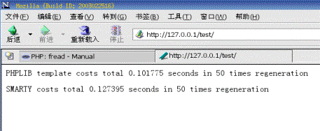 果然,測試結果如下圖,PHPLIB template有25%的速度優勢:
