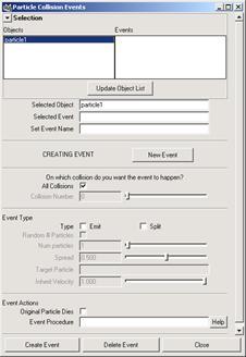 在這個對話框中可以為粒子的碰撞添加各種事件,具體參數如下:
