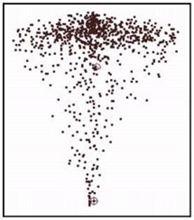 ● x 、 y 和 z direction :設置拖拽影響力的方向。當物體移動的方向與拖拽力場的方向相同時,拖拽力場具有最大的阻力作用;當物體移動的方向與拖拽力場的方向垂直時,拖拽力場不起作用,當物體移動的方向與拖拽力場的方向相反時,拖拽力場會加速物體的運動。圖 10-47 所示的為 directionx , y , z 值為 1 時,粒子所受影響的效果。