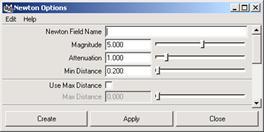 (3) 確定球體處于選中狀態。執行 fields → newton □命令,打開 newton options 對話框,執行 edit → reset setting 命令,然后單擊 create 按鈕。