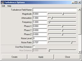 執(zhí)行 field → turbulence 命令打開其參數(shù)對(duì)話框,如圖 10-58 所示。