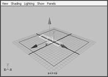 (1) 創建一個新場景。創建一個與柵格大小相當的 nurbs 平面。再創建一個長方體,將其平放在 x 軸上,然后將其壓扁成一個平板,如圖 11-10 所示。