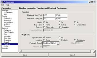 (4) 為了使動力模擬可以正常播放,播放速度設置為 free ,以便物理引擎計算進入到下一幀所需的數據。選擇 window → setting/preferences → preferences 命令并選擇 setting/timeline 命令,或者單擊位于屏幕右下方的 animation preferences 按鈕,都可以激活同一個對話框。在 preferences 對話框的 playback 區域,設置 playback speed 為 real-time ,如圖 11-8 所示。