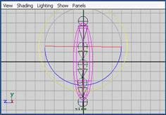 (1) 可建一個(gè)球體。執(zhí)行 create → nurbs primitives → shpere 命令,然后在通道框中設(shè)置 spans = 6 , scale y = 4 。