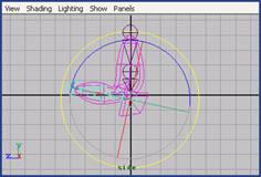 (8) 選擇骨骼鏈中的任意關(guān)節(jié),執(zhí)行 skin → go to bind pose 命令恢復(fù)骨骼的綁定 姿勢(shì)。