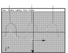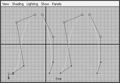 首先制作出曲線,生成如圖 4-24 所示的兩條 cv 曲線,按住 x 鍵并單擊把它們捕捉到刪格,然后把它們復制并平移到一邊。