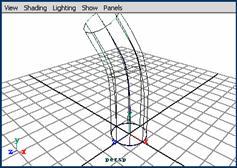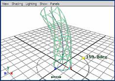 另外,還可以使形成后的擠壓物體產生扭曲造型。以上一個場景為例,重新選中擠壓后的物體,執行 modify → transformation tool → show manipulator tool 命令,視圖中出現手柄,拖動手柄可以使擠壓物體產生扭曲,如圖 4-49 所示。