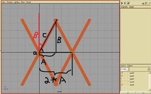 1 .首先創建一個多邊形立方體,取名 b1 ,作為第一條桿,長、寬、高分別為 0.4 、 10.1 、 0.2 。把它從 z 軸旋轉一點角度。
