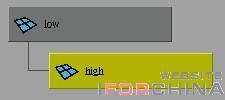 將 " high " 選取 , 并 parent 于 " low " 之下 .