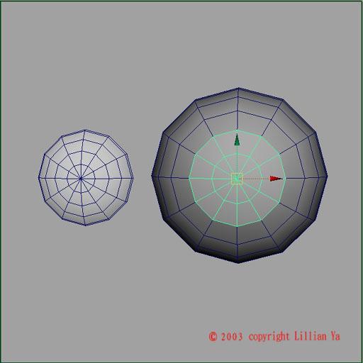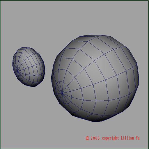 1. 先用兩個球體,把其中一個縮小在壓扁,另一個維持不變。