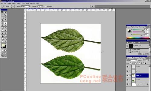 21. 新建圖層再把掃描或用數碼相機拍下正面和反面的葉子 uv 導入 photoshop 。