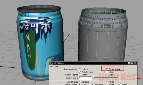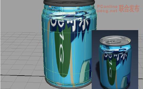 下圖用統一參數化創建的可樂罐,因為參數線不均勻引起貼圖拉伸,從視圖和渲染圖中都可看出來。