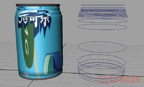 2 :選擇復制的 nurbs 曲線,并拖到原可樂罐旁邊,以便于比較。