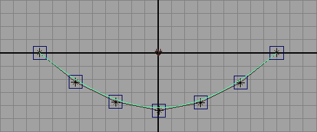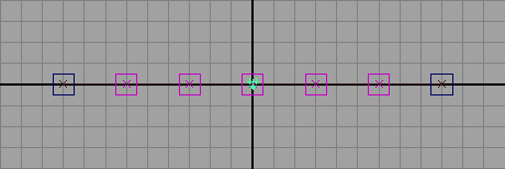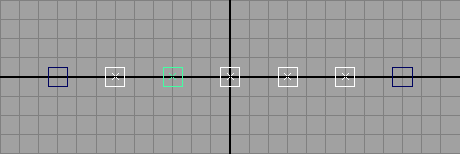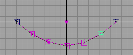 打開 7 個(gè)立方體的 selection-handles, 并創(chuàng)建 cv 曲線 , 每個(gè) cv 都 snap 到 selection handle 上 , 這樣就有了 7 個(gè) cv 點(diǎn) .