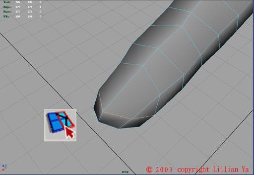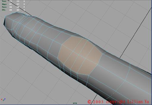 先把前端切割成六角形后,在進行長面,這樣長出來的指頭,會比較圓柱體,不易變形。