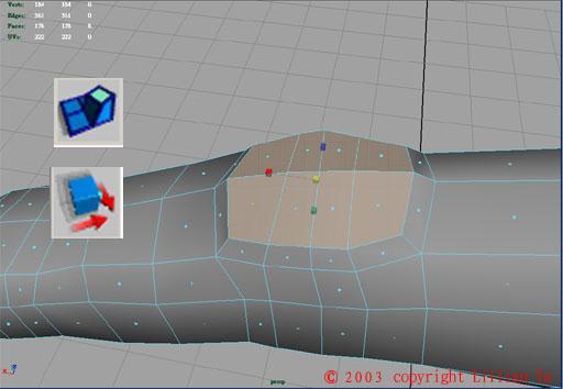 在用 edit polygon 下的 extrude face 這個長面 的 ** 能,來進行長面。