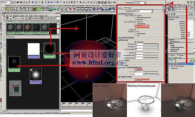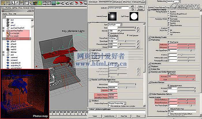 我用GI燈光來(lái)得到更好的畫(huà)面效果。由于MR的dedlectric shader、DGS refracted和反射值,我使用了caustics photons。我設(shè)置反射的次數(shù)為雙倍。這樣給了我真實(shí)水面的效果。(圖21)