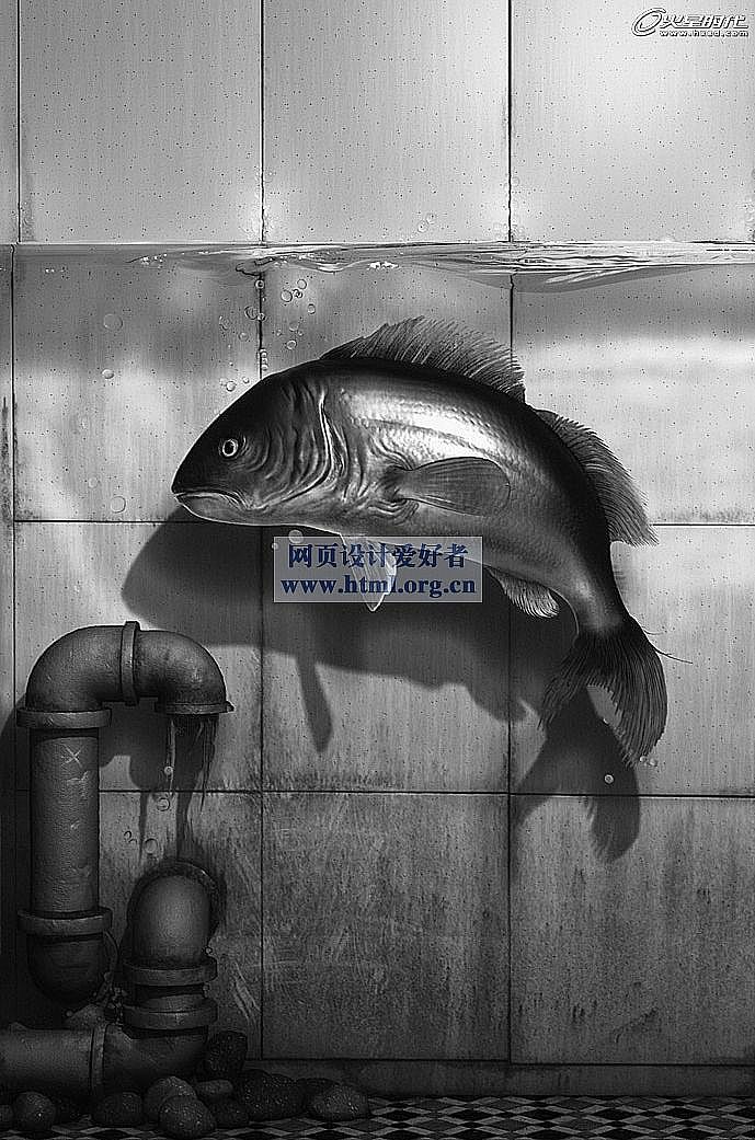 大家好,我是來(lái)自印度的Vaibhav shah。童年時(shí)的水箱給了我很大的靈感。每當(dāng)我參觀了漁業(yè)和水族館,我總是被骯臟的水箱所吸引,而魚(yú)就是在這里面生活著。我總是花時(shí)間去觀察水的運(yùn)動(dòng)和旋轉(zhuǎn)的影響。因此,我試著去制作骯臟的,又被冰冷的水淹沒(méi)的浴室,而魚(yú)就生存在漏水的水管之間。還有水管向水中吹入空氣產(chǎn)生了漂亮的水泡。我使用到的軟件有Maya,ZBrush,Mental Ray PS和UV-Layout。