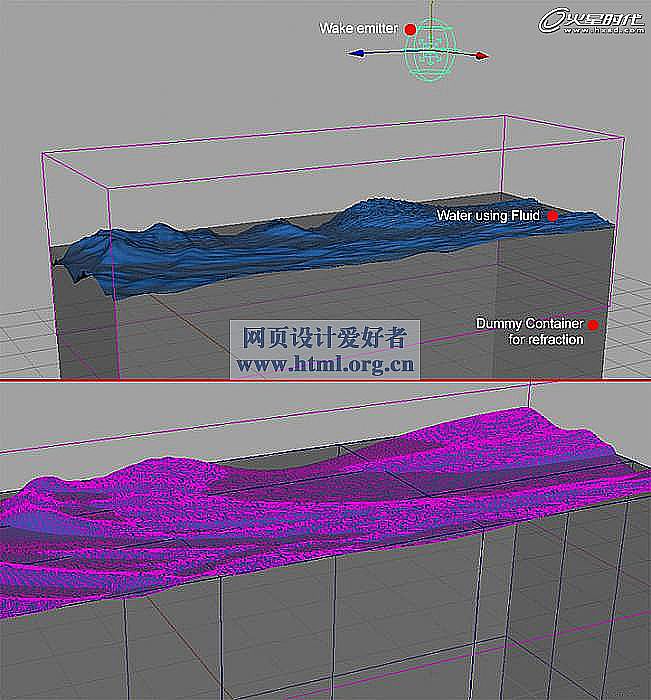 水的部分我創(chuàng)建了Pond Fluid流體和Wake Emitter產(chǎn)生波紋。當(dāng)我對(duì)形狀和水位感到滿意后,我把流體轉(zhuǎn)變?yōu)槎噙呅巍#▓D08)
