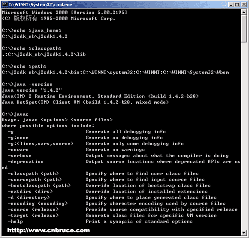 9、測試j2sdk的安裝與環境變量設置是否正確