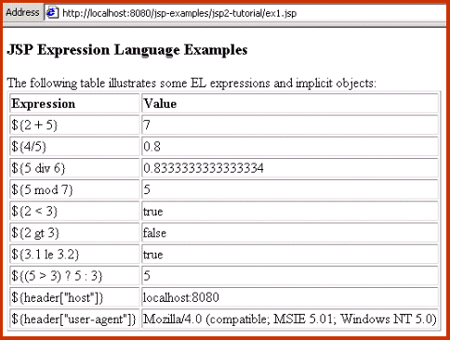 如你所言,網(wǎng)頁作者無須學(xué)習(xí)java也能夠使用這種表達(dá)式語言。示例代碼1顯示了一些表達(dá)式的例子和隱含對(duì)象的使用。