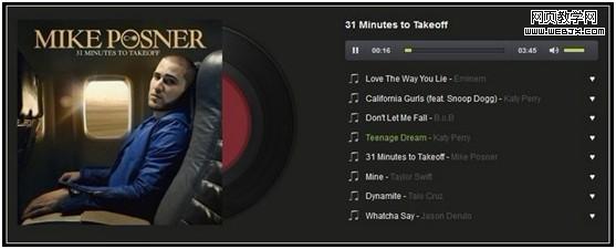 實例四是用audio標簽做的一個音樂播放器,用HTML5 API提供的屬性去控制該控件的播放play(),暫停pause(),進度條,當前時間currentTime,音量volume,歌曲選擇且封面和曲名相應變化等效果。