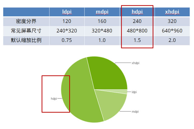 圖中把高密度的一類圈起來(lái),是因?yàn)檫@是android手機(jī)的統(tǒng)計(jì)數(shù)據(jù),在國(guó)內(nèi)安卓手機(jī)市場(chǎng)中,高密度的設(shè)備占了絕大多數(shù)的市場(chǎng)份額,這是很重要的一點(diǎn),也是我們做安卓端webapp要注意的關(guān)鍵點(diǎn)。