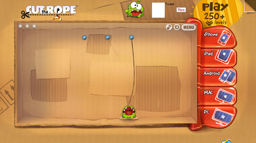 如上圖所示,這是一個割繩子游戲,但它卻不是一個本地的應用或者Metro風格的應用程序,而是實實在在的一個網頁版,只不過,我用的是平板電腦上的Metro版IE10訪問的,所以可以有全屏的沉浸式用戶體驗+觸摸交互。大家也不妨點擊圖片去體驗一下。這個網站是基于HTML5等新技術開發的,記得當時微軟還介紹過該團隊的開發背后的故事。我嘗試用Windows Phone 7.5 上的IE Mobile瀏覽器打開它,發現將屏幕橫過來后剛好,也是能夠正常呈現的,這就是HTML5時代最直觀的一個可以做到的優勢。IE10 已經提供了一個MS Pointers API,去方便開發人員開發出適合觸控的HTML5網站應用和游戲。