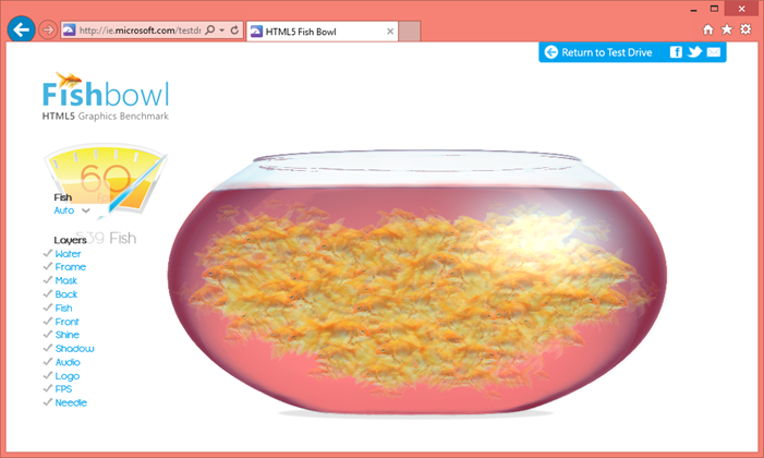 通過測試我們可以看到 IE10 對圖形圖像和 JavaScript 處理方面的性能優勢,有了高性能的呈現,那么對于富用戶體驗的 HTML5 交互式網站而言,無疑是流暢體驗的一種保障。