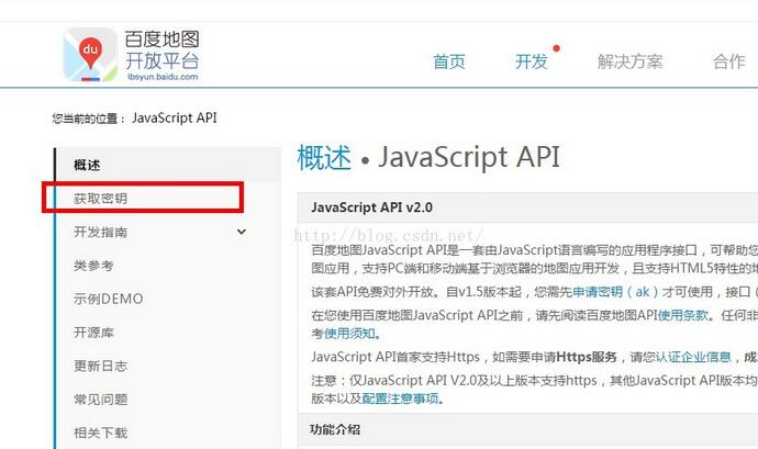 然后得到密鑰之后,我們回到主頁http://lbsyun.baidu.com/index.php?title=jspopular