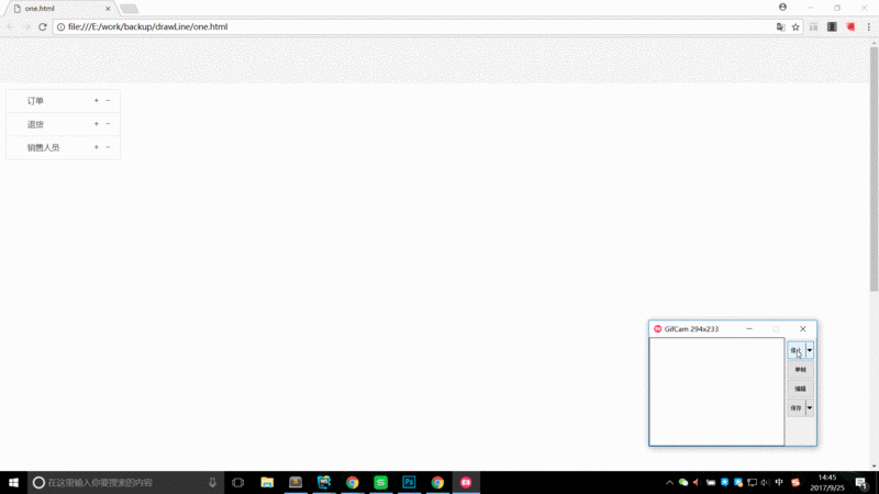 function startDrag(ev) { ev.dataTransfer.setData("Text",ev.target.innerText);}function allowDrop(ev) { ev.preventDefault();}function decideDrop(ev) { ev.preventDefault(); var length = $('.main-target').length; if(length == 0){ dropToMain(ev); }else { dropToRelate(ev); }}function dropToMain(ev) { var data=ev.dataTransfer.getData("Text"); var _html = '<div class="main-target">' + data + '</div>'; $('.main-target-wrap').width('auto').append(_html);}function dropToRelate(ev) { //畫關系線 drawLineOne(document.getElementById('canvasOne'), 'begin'); drawLineOne(document.getElementById('canvasTwo'), 'end'); //插入圖片 以及圖片初始化點擊事件 var _img = $('<img src="inner.png">'); $('.imgBox').append(_img); _img.click(showRelationBox); //寫入數據 var data = ev.dataTransfer.getData('Text'); var _html = '<div class="item-text">' + data + '</div>'; $('.relation-text-box').append(_html);}