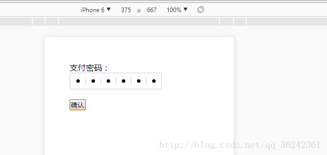 <!DOCTYPE html> <html lang="en"> <head> <meta charset="UTF-8"> <meta name="viewport" content="width=device-width,initial-scale=1,minimum-scale=1,maximum-scale=1,user-scalable=no" /> <title>仿支付寶密碼框-移動端測</title> <style type="text/css"> *{ margin: 0; padding: 0; } body { padding: 50px; } .clearfix:after { clear: both; } .clearfix:before, .clearfix:after { content: " "; display: table; } .alieditContainer { position: relative; } .sixDigitPassword { position: absolute; left: -222px; top: 0; width: 1000px; height: 26px; color: #fff; font-size: 12px; -webkit-box-sizing: content-box; box-sizing: content-box; -webkit-user-select: initial; outline: 'none'; z-index: 999; opacity: 0; filter: alpha(opacity=0); } .sixDigitPassword-box { cursor: text; background: #fff; outline: none; position: relative; padding: 8px 0; height: 15px; border: 1px solid #cccccc; border-radius: 2px; } .sixDigitPassword-box i { float: left; display: block; padding: 4px 0; height: 7px; border-left: 1px solid #cccccc; } .sixDigitPassword-box .active { background: url('password-blink.gif') no-repeat center center; } .sixDigitPassword-box b { display: block; margin: 0 auto; width: 7px; height: 7px; overflow: hidden; visibility: hidden; background: url('passeord-dot.png') no-repeat; } .sixDigitPassword-box span { position: absolute; display: block; left: 0px; top: 0px; height: 30px; border: 1px solid rgba(82, 168, 236, .8); border: 1px solid #00ffff/9; border-radius: 2px; visibility: hidden; -webkit-box-shadow: inset 0px 2px 2px rgba(0, 0, 0, 0.75), 0 0 8px rgba(82, 168, 236, 0.6); box-shadow: inset 0 1px 1px rgba(0, 0, 0, 0.075), 0 0 8px rgba(82, 168, 236, 0.6); } .ui-securitycore .ui-form-item .ui-form-explain { margin-top: 8px; } .i-block { display: inline-block; } .six-password { position: relative; height: 33px; width: 182px; overflow: hidden; vertical-align: middle; } } </style> </head> <body> <form action="" method="post" name="payPassword" id="form_paypsw"> <div id="payPassword_container" class="alieditContainer clearfix" data-busy="0"> <label for="i_payPassword" class="i-block">支付密碼:</label><br /> <div class="i-block" data-error="i_error"> <div class="i-block six-password"> <input class="i-text sixDigitPassword" id="payPassword_rsainput" type="tel" autocomplete="off" required="required" value="" name="payPassword_rsainput" data-role="sixDigitPassword" tabindex="" maxlength="6" minlength="6" aria-required="true"> <div tabindex="0" class="sixDigitPassword-box" style="width: 180px;"> <i style="width: 29px; border-color: transparent;" class=""><b style="visibility: hidden;"></b></i> <i style="width: 29px;"><b style="visibility: hidden;"></b></i> <i style="width: 29px;"><b style="visibility: hidden;"></b></i> <i style="width: 29px;"><b style="visibility: hidden;"></b></i> <i style="width: 29px;"><b style="visibility: hidden;"></b></i> <i style="width: 29px;"><b style="visibility: hidden;"></b></i> <span style="width: 29px; left: 0px; visibility: hidden;" id="cardwrap" data-role="cardwrap"></span> </div> </div> </div> </div> </form> <button class="passBtn" style="margin-top:20px;">確認</button> <script src="../js/jquery-2.1.0.js" type="text/javascript" charset="utf-8"></script> <script src="jquery-validate.js" type="text/javascript"></script> <script type="text/javascript"> var _formPay = $('#form_paypsw'); _formPay.validate({ rules: { 'payPassword_rsainput': { 'minlength': 6, 'maxlength': 6, required: true, digits: true } } }); var payPassword = $("#payPassword_container"), _this = payPassword.find('i'), k = 0, j = 0, password = '', _cardwrap = $('#cardwrap'); //點擊隱藏的input密碼框,在6個顯示的密碼框的第一個框顯示光標 payPassword.on('focus', "input[name='payPassword_rsainput']", function() { var _this = payPassword.find('i'); if(payPassword.attr('data-busy') === '0') { //在第一個密碼框中添加光標樣式 _this.eq(k).addClass("active"); _cardwrap.css('visibility', 'visible'); payPassword.attr('data-busy', '1'); } }); //change時去除輸入框的高亮,用戶再次輸入密碼時需再次點擊 payPassword.on('change', "input[name='payPassword_rsainput']", function() { _cardwrap.css('visibility', 'hidden'); _this.eq(k).removeClass("active"); payPassword.attr('data-busy', '0'); }).on('blur', "input[name='payPassword_rsainput']", function() { _cardwrap.css('visibility', 'hidden'); _this.eq(k).removeClass("active"); payPassword.attr('data-busy', '0'); }); //使用keyup事件,綁定鍵盤上的數字按鍵和backspace按鍵 payPassword.on('keyup', "input[name='payPassword_rsainput']", function(e) { var e = (e) ? e : window.event; //鍵盤上的數字鍵按下才可以輸入 if(e.keyCode == 8 || (e.keyCode >= 48 && e.keyCode <= 57) || (e.keyCode >= 96 && e.keyCode <= 105)) { k = this.value.length; //輸入框里面的密碼長度 l = _this.size(); //6 for(; l--;) { //輸入到第幾個密碼框,第幾個密碼框就顯示高亮和光標(在輸入框內有2個數字密碼,第三個密碼框要顯示高亮和光標,之前的顯示黑點后面的顯示空白,輸入和刪除都一樣) if(l === k) { _this.eq(l).addClass("active"); _this.eq(l).find('b').css('visibility', 'hidden'); } else { _this.eq(l).removeClass("active"); _this.eq(l).find('b').css('visibility', l < k ? 'visible' : 'hidden'); } if(k === 6) { j = 5; } else { j = k; } $('#cardwrap').css('left', j * 30 + 'px'); } } else { //輸入其他字符,直接清空 var _val = this.value; this.value = _val.replace(//D/g, ''); } }); //獲取密碼 $('.passBtn').on('click', function() { var reg = new RegExp("^[0-9]*$");//驗證數字 var pass = $('#payPassword_rsainput').val(); /*PC端測試:主鍵盤的數字對應的字符對應的keyCode相同,所以也可顯示到框中。但是input中value沒有數字,判斷一下非空即可。 *移動端測試: *和#都可輸入,需正則驗證一下非法字符 * */ if(!pass){ alert('密碼為空,請輸入密碼'); }else if(pass.length < 6){ alert('密碼長度為6位'); }els