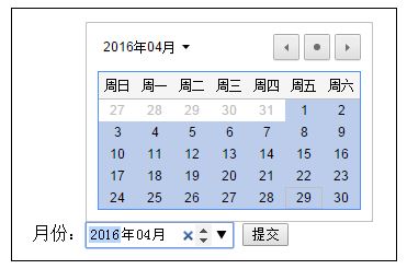 value {string} :設置或獲取控件的值,值的格式要為:"yyyy-MM"。