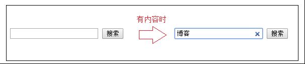 說明:在Chrome中搜索框沒內容時就像普通的文本輸入框,當有內容時右邊有個'x'符號,用以清除文本內容。