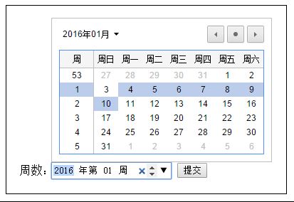 說明:顯示一個可選擇年數、周數的日歷控件。