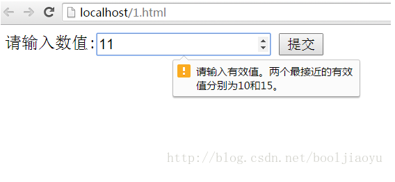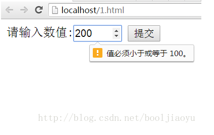 <!DOCTYPE html><html lang="en"><head> <meta charset="UTF-8"> <title>表單驗證示例</title></head><body> <form action="#" method="post"> 請輸入數(shù)值:<input type="number" name="point" min="0" max="100" /> <input type="submit" value="提交"> </form></body></html>