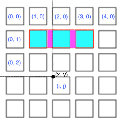 格子是左上角的坐標是(0, 0),向右是橫坐標增加,向下是縱坐標增加。這個方向和Canvas相同。