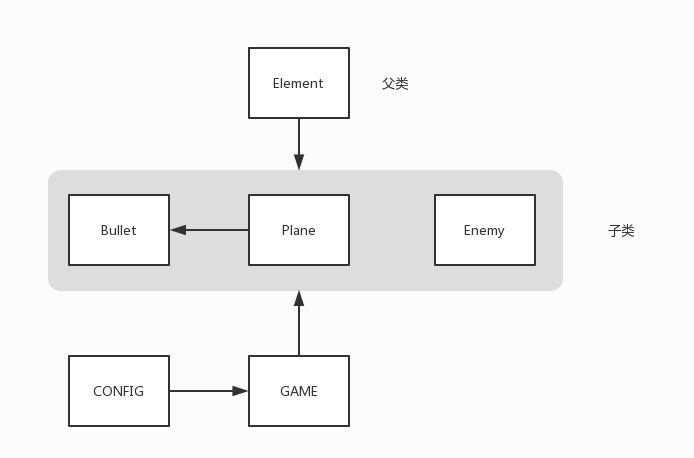 因為怪獸(Enemy)、飛機(Plane)、子彈(Bullet)都有相同的 x, y, size, speed 屬性和 move() 方法,所以可以定義一個父類 Element,通過子類繼承父類的方式實現。