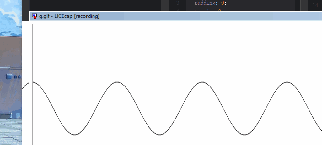 上面得到的是是一個靜態的函數圖像,而我們一般見到的的波形圖或水波都是隨時間連續變化的,這里就要用到上一步中的參數相位φ,(js即代碼中的Q) ,我們將φ隨時間不斷增加或減小,即可得到不同時間的不同圖像;使用window.requestAnimationFrame實現幀動畫;