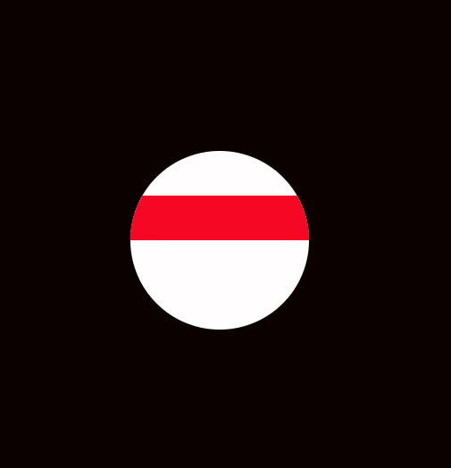 var canvas = document.getElementById("canvas"); var context = canvas.getContext("2d"); context.beginPath(); context.fillStyle = "#0C0101"; context.fillRect(0,0,canvas.width,canvas.height); context.beginPath(); context.fillStyle = "#FFFDFD"; context.arc(400,400,100,0,2*Math.PI); context.fill(); context.clip(); context.beginPath(); context.fillStyle = "#F60825"; context.fillRect(200, 350, 400,50);
