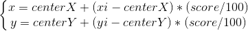 6 個頂點代表了六種能力,比如這里的各科成績,把六種能力封閉成一個閉合路徑并填充則稱為覆蓋圖。要繪制出覆蓋圖,這里需要計算出六個頂點。6 個頂點可以通過最外圍的六邊形的 6 個頂點和中心點來計算。簡單來說就是通過能力得分,在頂點到中心距離的占比來計算。計算公式如下。